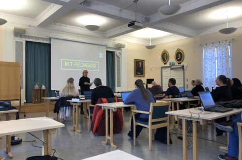 Så här ser en av våra deluppgifter ut. Det är ett utdrag ur kurs 8 – Pedagogik med digitala verktyg. Carina presenterar denna kurs i skolans stora aula inför 19 stycken it-pedagoger. A. Reflektion forskning- pedagogik med digitala verktyg Att använda sig av digitala verktyg är ett sätt att utveckla pedagogiken för att anpassa till åhörare, ge variation och väcka intresse. I denna uppgift ska vi gå igenom en del forskning kring lärande i allmänhet och pedagogik med digitala verktyg i synnerhet. Modern forskning visar att det är viktigt att all undervisning präglas av variation, utmaningar och erfarenhetsutbyte. Nedan finns en sammanfattning från skolverket av boken ”Utmärkt undervisning” av Jan…